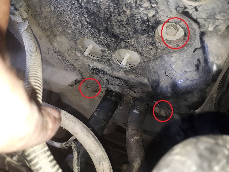 3. Снимаем защиту картера, сливаем остатки антифриза с основного радиатора. Затем снимаем патрубки с печки, сольется еще немного.
